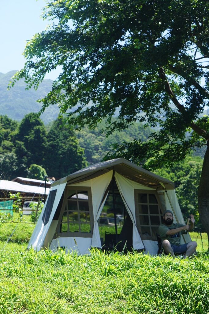 キャンプというより、もう「外に建てた家」みたいな安心感。広い空間としっかりした作りで、小さな子どもがいても安心。